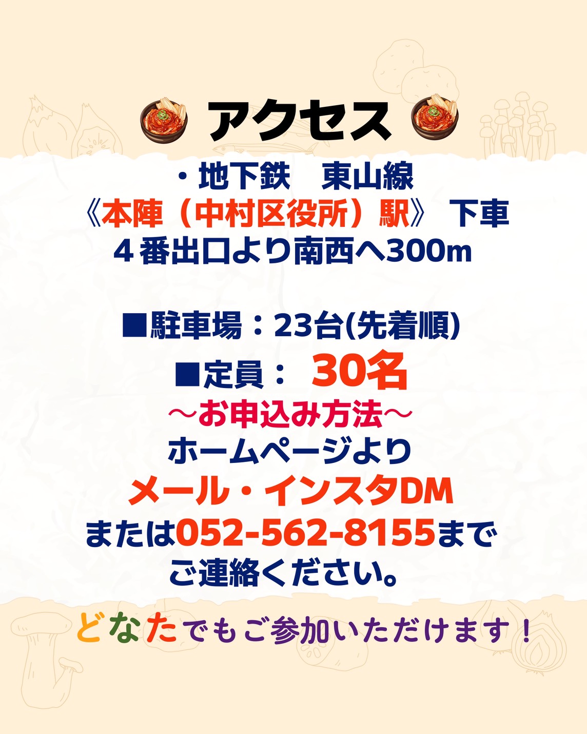 📍応募締め切り:先着順応募のため、定員になり次第終了させていただきます。